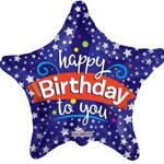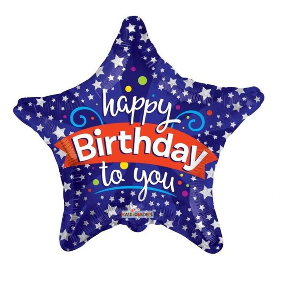 Foil Balloon Happy Birthday 90cm Navy Blue Star Shape with Silver Holographic Lettering. Air and helium inflatable. After filling with helium, the balloon rises beautifully. Balloon sold inflated. Have fun decorating your birthday party decorations that are sure to be original and unique. Great balloon for decorating candy tables or buffets, colour can be combined with any theme and sure to make a visual impact!