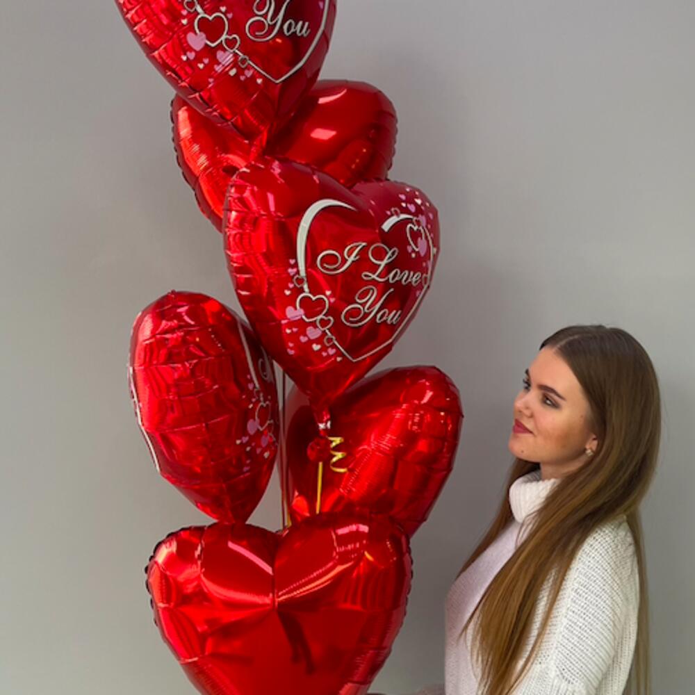 Foil balloons I Love You 3 pcs, red hearts 4 pcs, 46x48cm