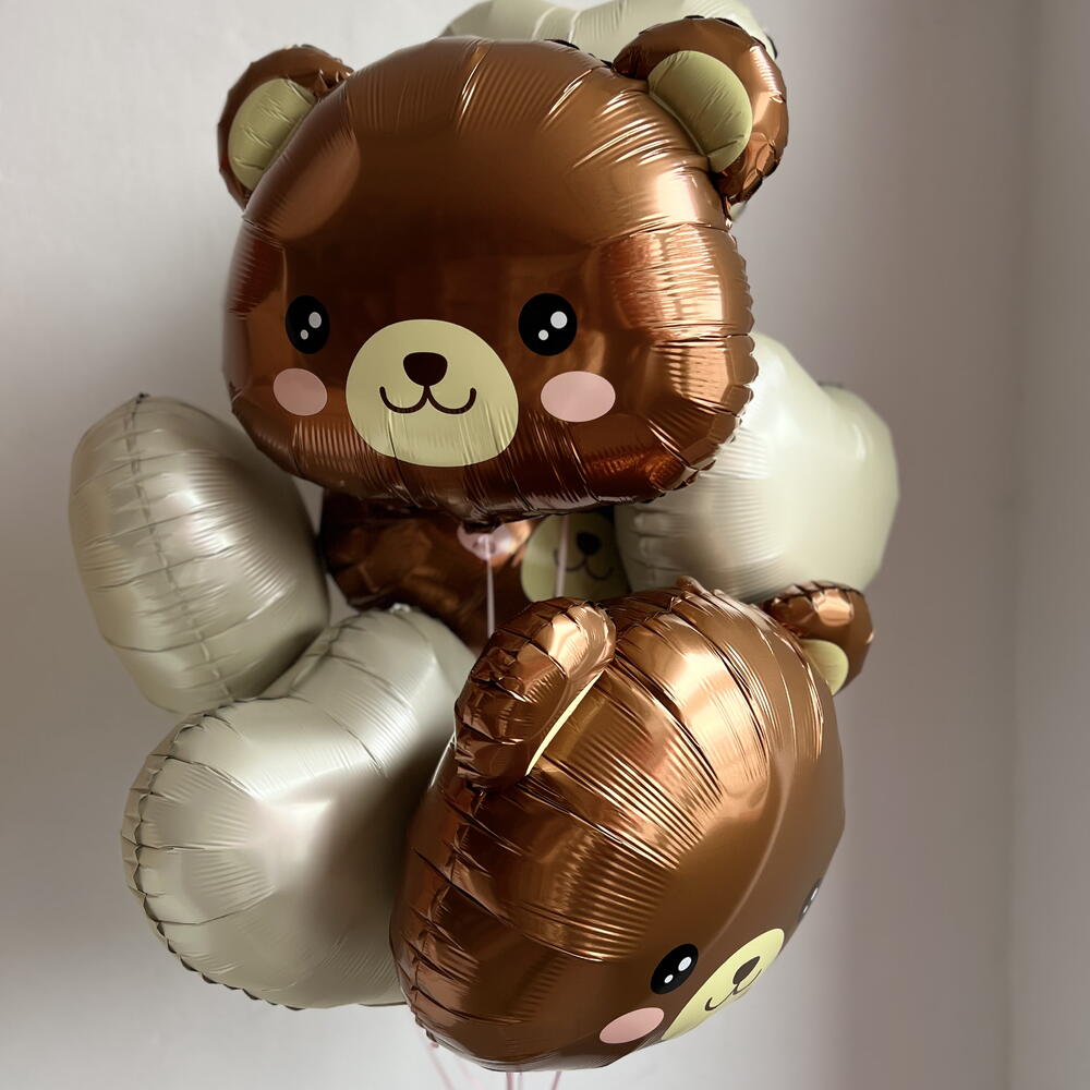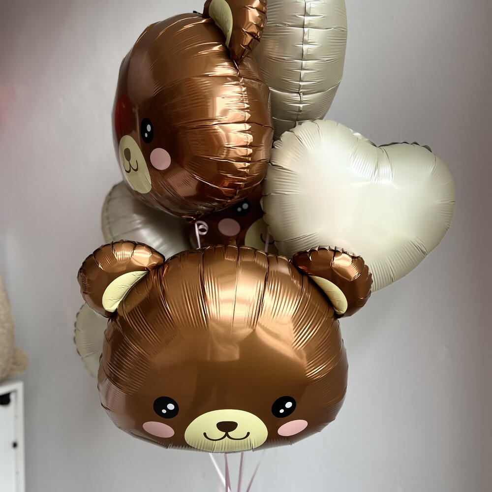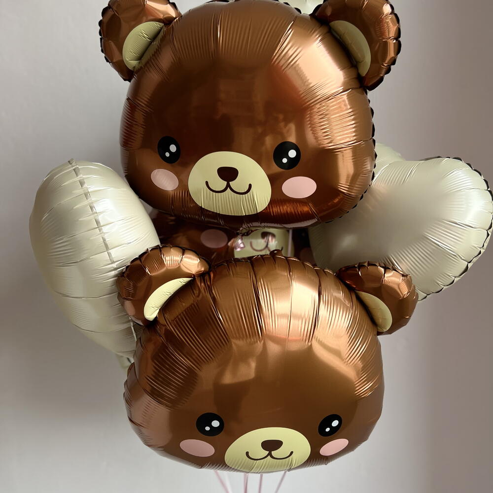 Нежен и много топъл комплект за признание в любов или романтична изненада за Свети Валентин. Милите мечета и спокойните бежови нюанси създават усещане за грижа и уют. В комплекта са включени: – 3 фолиеви балона „Мече“ – 4 фолиеви сърца в бежови оттенъци Композицията изглежда въздушна, хармонична и е подходяща както за подарък, така и за красиви снимки. Всички балони са обработени с полимер за по-дълъг полет. Персонализацията, цветовете и размерът на композицията могат да бъдат променени — просто ни напишете, с радост ще подберем всичко за вас.
