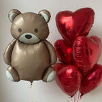 Bear and 5 Heart Balloons