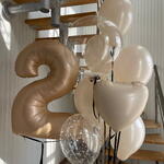 Included in the set: Number 1 bouquet of 9 balloons ( heart 45cm , 1 balloon 30cm with styrofoam, bubble 50cm with styrofoam inside, 6 balloons 30cm pastel) 2 weights 1 bag for transportation Total number of balloons: 10 Filling: All balloons with helium длина, мм: 2000 ширина, мм: 2000 высота, мм: 2000