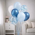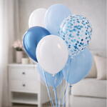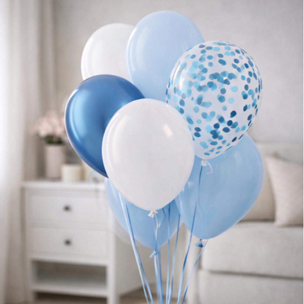 Стильная композиция из латексных шаров в голубых оттенках. Внутри каждого шара находится маленький светодиодный светлячок на батарейках, благодаря которому шары красиво подсвечиваются в темноте. Состав набора: • 7 латексных шаров (30 см) • LED-подсветка внутри каждого шара • наполнение гелием • ленты ⸻ English Name: Blue LED Balloons Description: A stylish bouquet of blue latex balloons. Each balloon contains a small battery-powered LED light that makes the balloons glow beautifully in the dark. Set includes: • 7 latex balloons (30 cm) • LED lights inside each balloon • helium filling • ribbons ⸻ Suomi Nimi: Siniset LED-ilmapallot Kuvaus: Tyylikäs kimppu sinisiä lateksi-ilmapalloja. Jokaisen pallon sisällä on pieni paristokäyttöinen LED-valo, joka saa pallot hehkumaan kauniisti pimeässä. Setti sisältää: • 7 lateksi-ilmapalloa (30 cm) • LED-valot jokaisen pallon sisällä • heliumtäyttö • nauhat