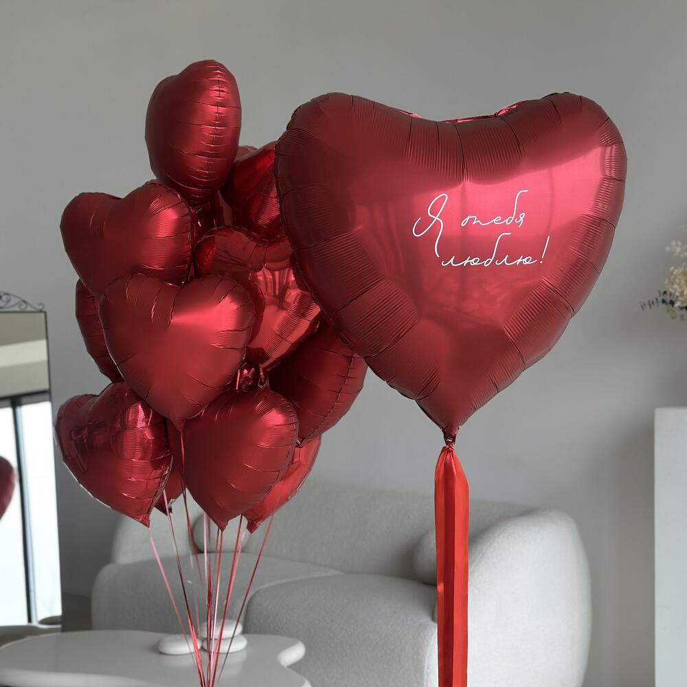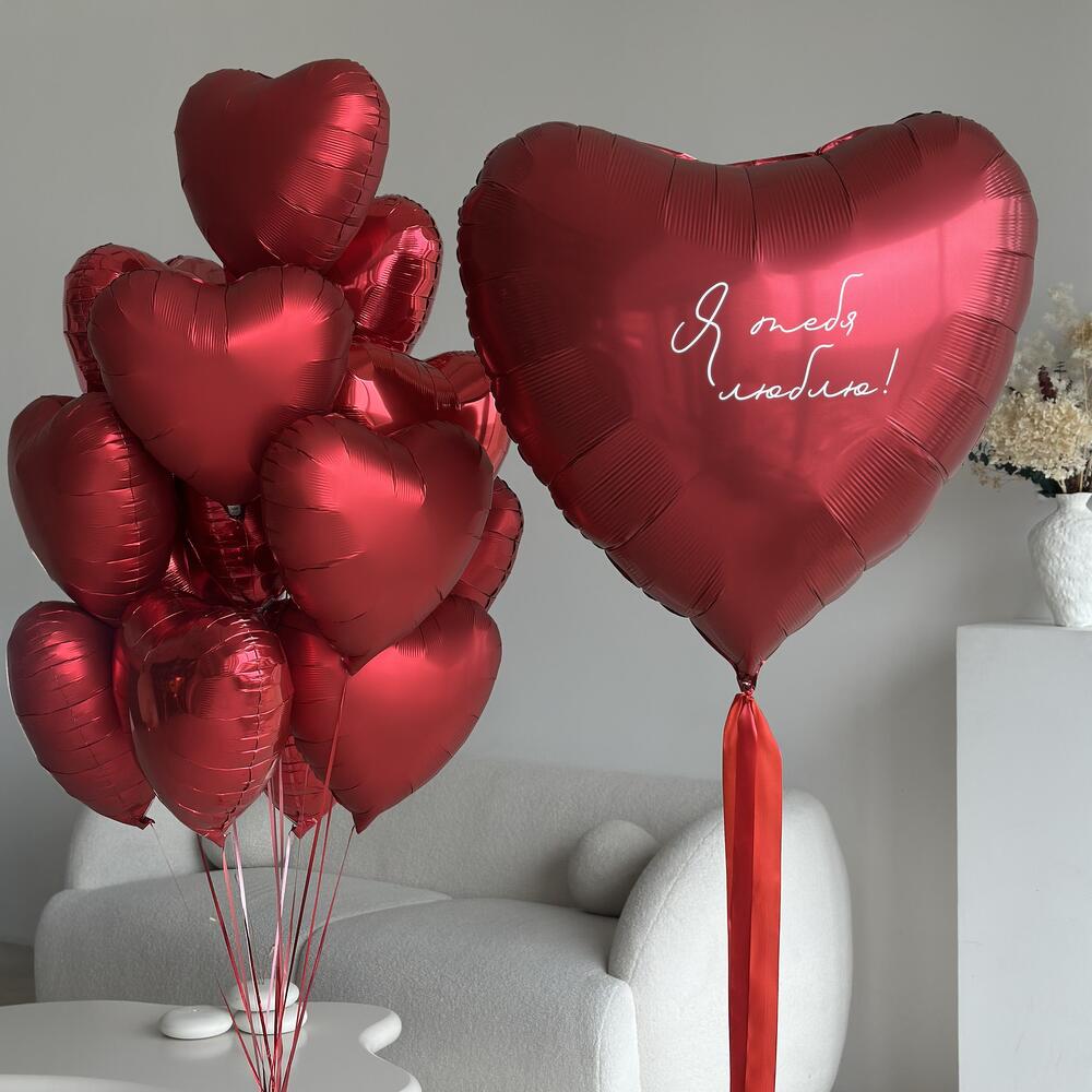 Set contents: - Large foil heart with personalized inscription; - Set of 15 foil hearts of standard size; *The inscription on the big balloon can be any (not more than 5 words). Specify it in the comments to the order.It is also possible to place up to four photos on a large Heart. **Colors of balloon composition can be chosen. Write your wishes on colors when placing an order.