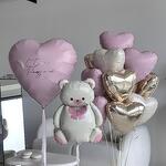 Set contents: - Large foil balloon Heart with an personalized inscription; - The big thematic balloon is “Teddy Bear” - Fountain of foil hearts of standard size 12 pcs. *The inscription on the big balloon can be any (not more than 5 words). Specify it in comments to the order. It is also possible to place up to four photos on a large Heart. **Colors of balloon composition can be chosen. Write your wishes on colors when placing an order.