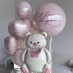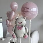 Set contents: - Large Bubbles balloon (60 cm) with an personalized inscription; - The big thematic balloon is “Teddy Bear” - Fountain of foil hearts and latex balloons of standard size 8 pcs. *The inscription on the big balloon can be any (not more than 5 words). Specify it in comments to the order. **Colors of balloon composition can be chosen. Write your wishes on colors when placing an order.