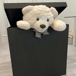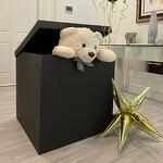 Size 70*70*70 inches, black color with big giant white bear ( size 47 inch), with 8 balloons inside the box