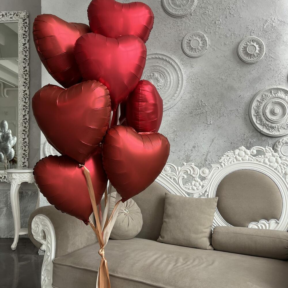 The set includes: 8 foil hearts, satin ribbons Color: Red