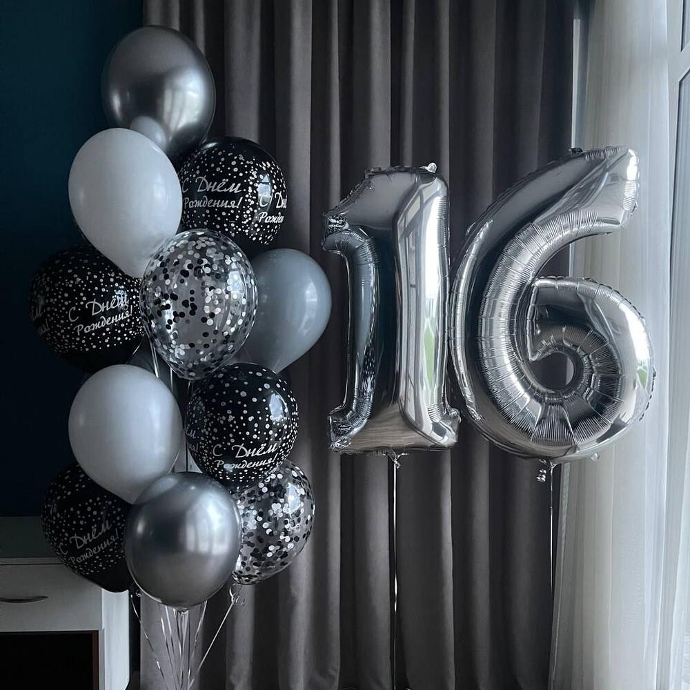 Included in the set: Number 1 cluster of 16 balloons ( 5 balloons 30cm latex with print, 5 balloons 30cm pastel, 3 balloons 30cm chrome, 3 balloons 30cm with confetti) 3 weights 2 bags for transportation Total number of balloons: 17 Filling: All balloons with helium длина, мм: 2000 ширина, мм: 2000 высота, мм: 2000