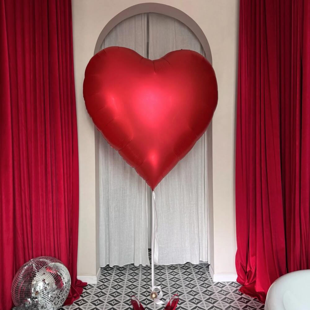 The set includes: Large XXL heart 136 cm DETAILS Price includes: helium-filled balloons, sealing gel, ribbons, weights, transport bags. The text on the balloon and foil numbers can be customized. Necessary changes can be made in the cart in the Order Comments window. There is also the possibility to change the color scheme of the set, balloons, and their quantity. The cost will be calculated individually.