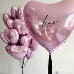 The set includes: Large heart with inscription 23 foil hearts (colors to choose from: pink white red beige rose gold) DETAILS Price includes: helium-filled balloons, sealing gel, ribbons, weights, transport bags.