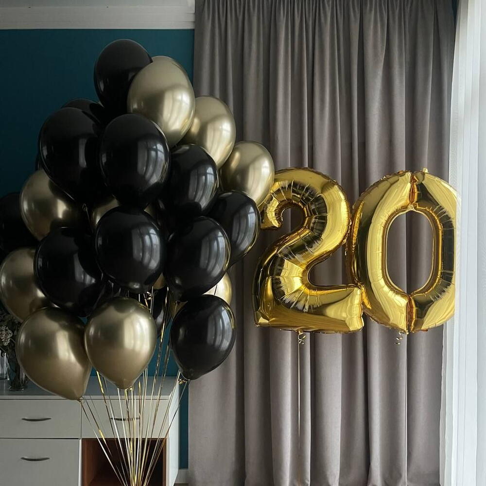 Set includes: Number balloon 1 bouquet of 35 balloons ( 18 balloons 30cm pastel, 17 balloons 30cm chrome) 3 weights 3 transport bags Total number of balloons: 36 Filling: All balloons are helium-filled длина, мм: 2000 ширина, мм: 2000 высота, мм: 2000