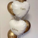 Two foil hearts, 4 gold and 2 transparent latex balloons