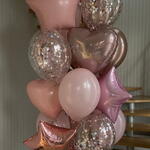 The set includes: 1 cluster of 19 balloons ( 4 hearts 45cm , 3 stars 45cm , 3 confetti balloons 30cm , 3 chrome balloons 30cm , 6 pastel balloons 30cm ) 1 weight 1 transport bag Total number of balloons: 19 Filling: All balloons with helium длина, мм: 2000 ширина, мм: 2000 высота, мм: 2000