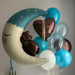 Included in the set: 1 figure: moon with bear 1 bouquet of 11 balloons ( 1 heart 45cm with inscription, 1 heart 45cm with inscription, 3 balloons 30cm crystal, 6 balloons 30cm pastel) 2 weights 1 bag for transportation Total number of balloons: 12 Filling: All balloons with helium длина, мм: 2000 ширина, мм: 2000 высота, мм: 2000
