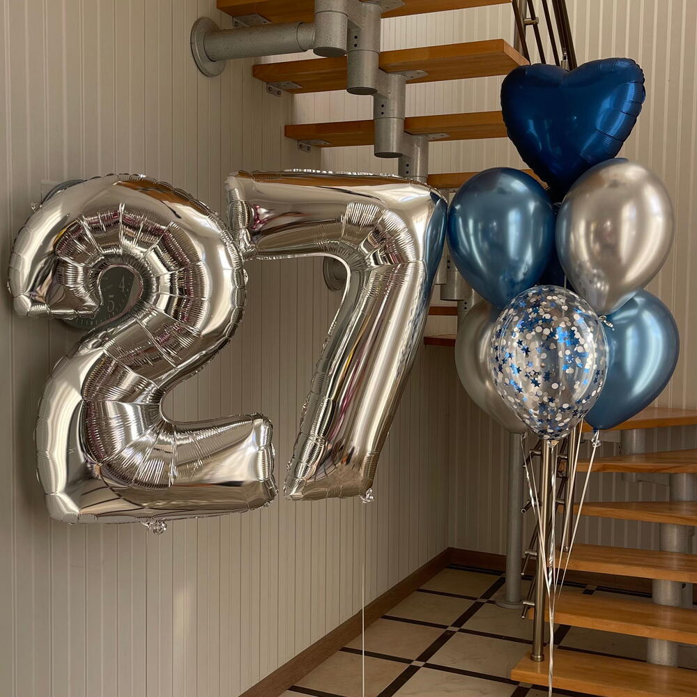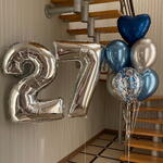 Included in the set: Number 1 bouquet of 7 balloons ( 1 heart 45cm , 2 balloons 30cm with confetti, 4 balloons 30cm chrome) 3 weights 2 bags for transportation Total number of balloons: 8 Filling: All balloons are helium-filled длина, мм: 2000 ширина, мм: 2000 высота, мм: 2000