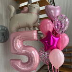 Included in the set: Number 1 figure: cat with bow 1 bouquet of 10 balloons ( 2 balloons 30cm with confetti, 1 star 45cm , 1 heart 45cm , 1 balloon 30cm chrome, 5 balloons 30cm pastel) 3 weights 2 bags for transportation Total number of balloons: 12 Filling: All balloons with helium длина, мм: 2000 ширина, мм: 2000 высота, мм: 2000