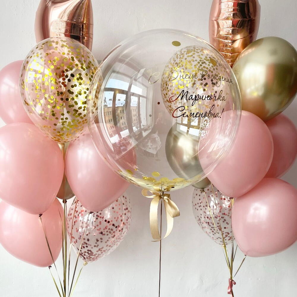 The volumetric composition consists of two fountains (each with 10 balls) and a large surprise balloon.
