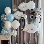 Included in the set: Number 3 figures: cloud 1 figure: raccoon 2 balloons 45cm 2 bouquets of 10 balloons each (each includes: 2 balloons 30cm with confetti, 2 balloons 30cm with paint, 2 balloons 30cm chrome, 4 balloons 30cm pastel) 1 bouquet of 3 balloons ( 2 balloons 30cm pastel, 1 balloon 30cm with paint) 10 weights 6 bags for transportation Total number of balloons: 30 Filling: All balloons with helium длина, мм: 2000 ширина, мм: 2000 высота, мм: 2000