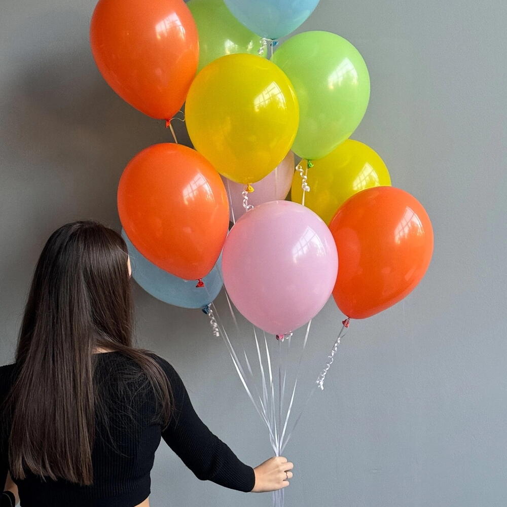 10 разноцветных воздушных Шариков, надутых гелием