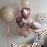7 balloons size 12 inch , two hearts one sky , one big glass balloon, one stork