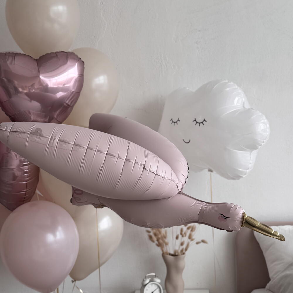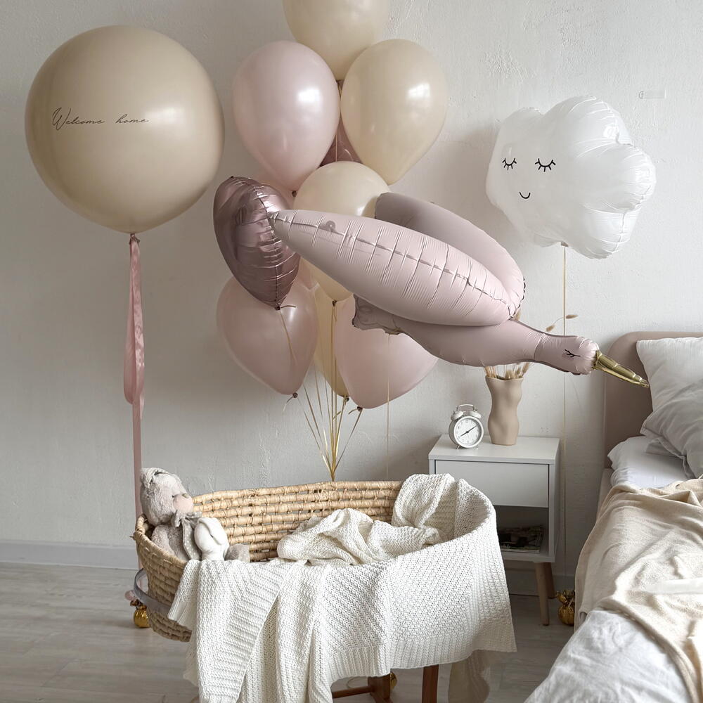 7 balloons size 12 inch , two hearts one sky , one big glass balloon, one stork