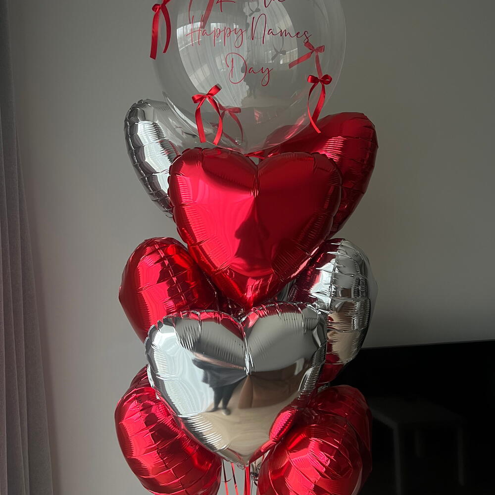 Included in the set: 1 bundle of 11 balloons ( 10 hearts 45cm , 1 bubble 60cm with inscription and bows) 1 weight 1 bag for transportation Total number of balloons: 11 Filling: All balloons with helium длина, мм: 2000 ширина, мм: 2000 высота, мм: 2000
