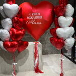 Included in the set: 1 WOW heart 160cm with tassel garlands 2 bouquets of 15 hearts 45cm Inscription on the heart of 3-4 words as a gift 3 weights 4 bags for transportation Total number of balloons: 31 Filling: All balloons filled with helium длина, мм: 2000 ширина, мм: 2000 высота, мм: 2000