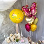 Included: 1 crystal balloon 70 cm with inscription "March 8th" and stickers 1 bouquet: butterfly, 6 hearts 45 cm (one heart has an inscription) 2 weights 2 bags for transportation Total number of balloons: 8 Filling: All balloons with helium длина, мм: 2000 ширина, мм: 2000 высота, мм: 2000