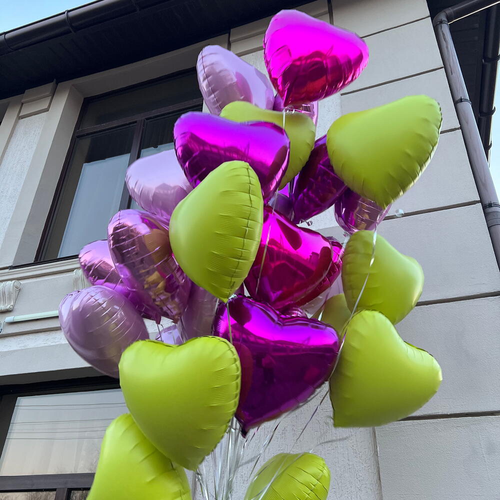 Set includes: 1 bouquet of 25 hearts 45cm 1 weight 1 transport bag Total number of balloons: 25 Filling: All balloons are helium-filled длина, мм: 2000 ширина, мм: 2000 высота, мм: 2000