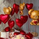 Included in the set: 8 hearts 45cm on weights 1 heart 60cm with inscription 3 figures: teddy bear 7 hearts 45cm for the bed 12 weights 2 bags for transportation Total number of balloons: 19 Filling: Balloons for the bed are air-filled, the rest are helium-filled длина, мм: 2000 ширина, мм: 2000 высота, мм: 2000