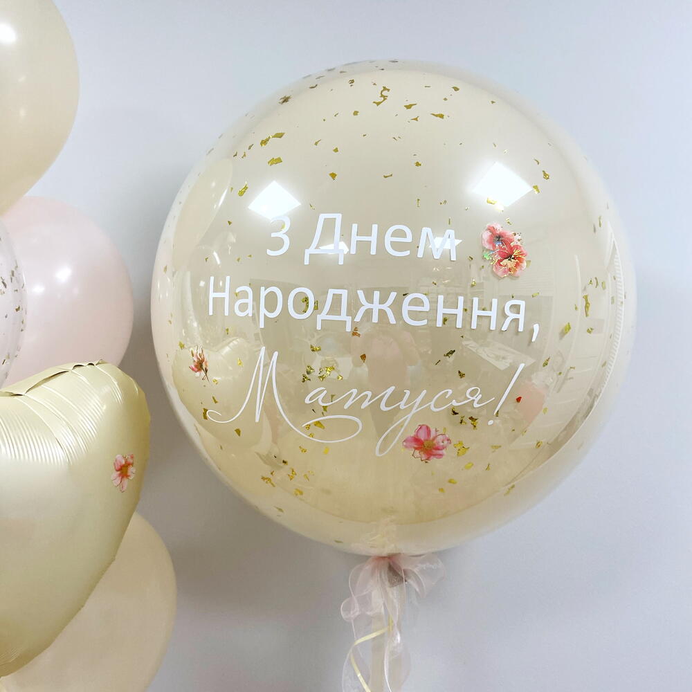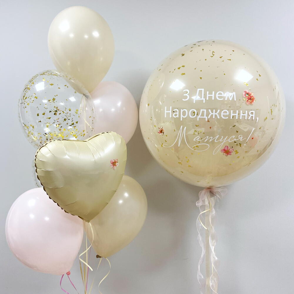 Beautiful delicate balloon set: Large balloon with a personalized inscription (when ordering, let us know what text should be on the balloon) Balloon set with a heart (5 latex balloons + 1 foil heart)