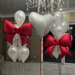 Set includes: 2 clusters of 10 balloons (each: figure: bow , 9 pearl balloons 30cm ) 1 heart 90cm 3 weights 3 transport bags Total number of balloons: 21 Filling: All balloons with helium длина, мм: 2000 ширина, мм: 2000 высота, мм: 2000
