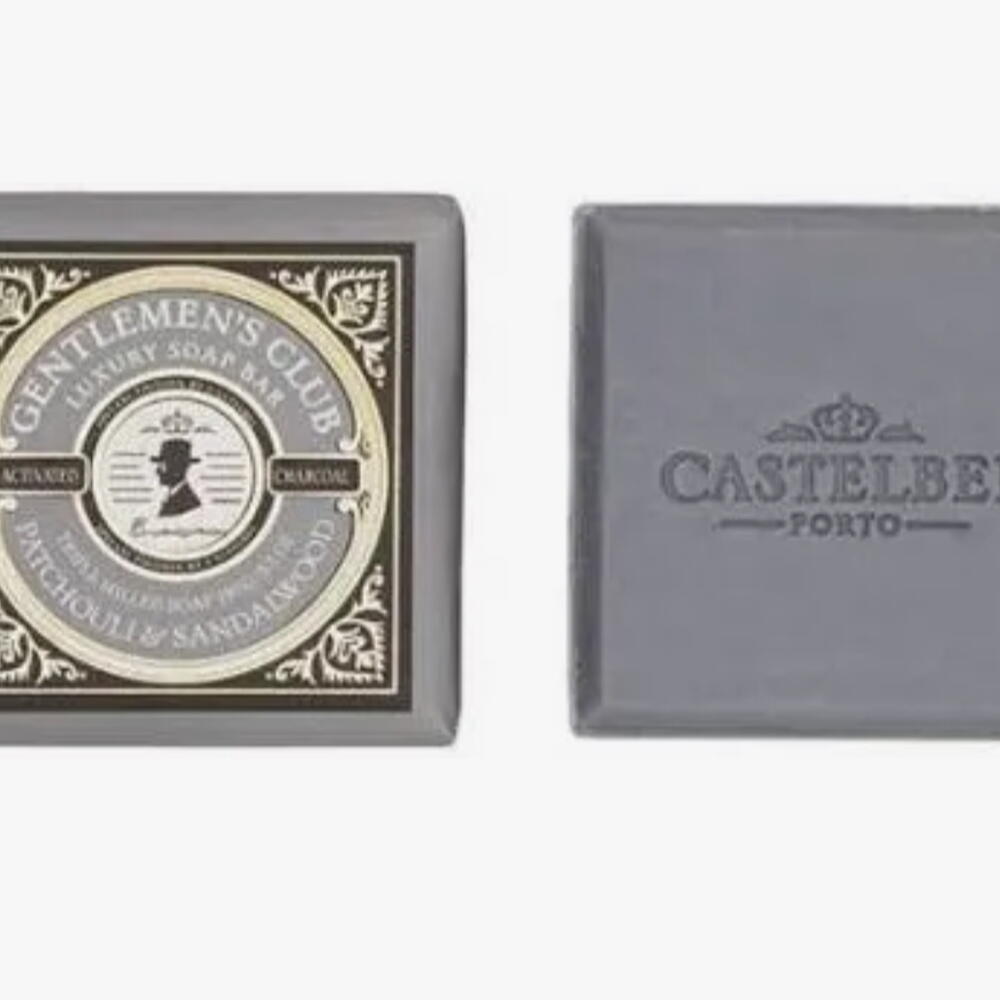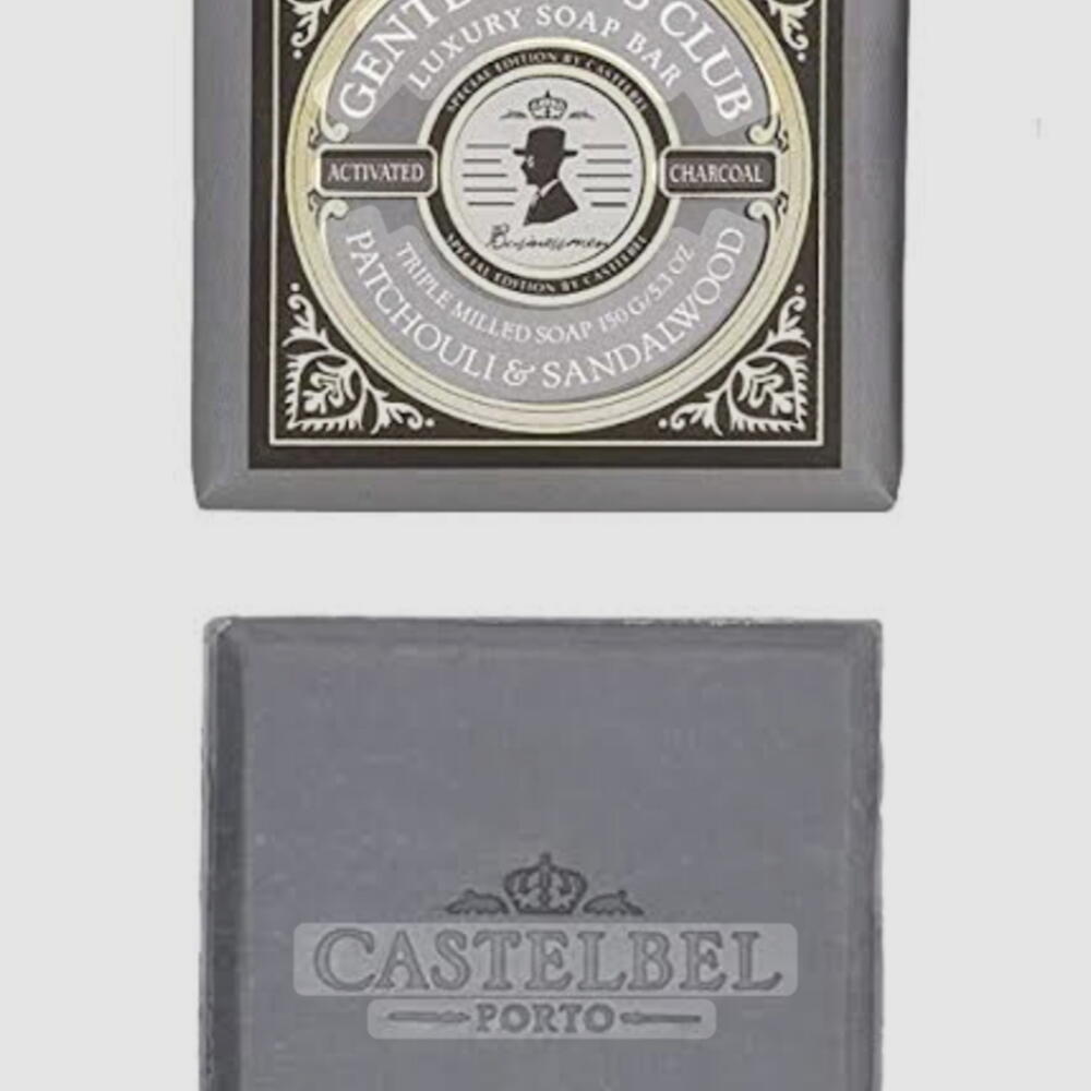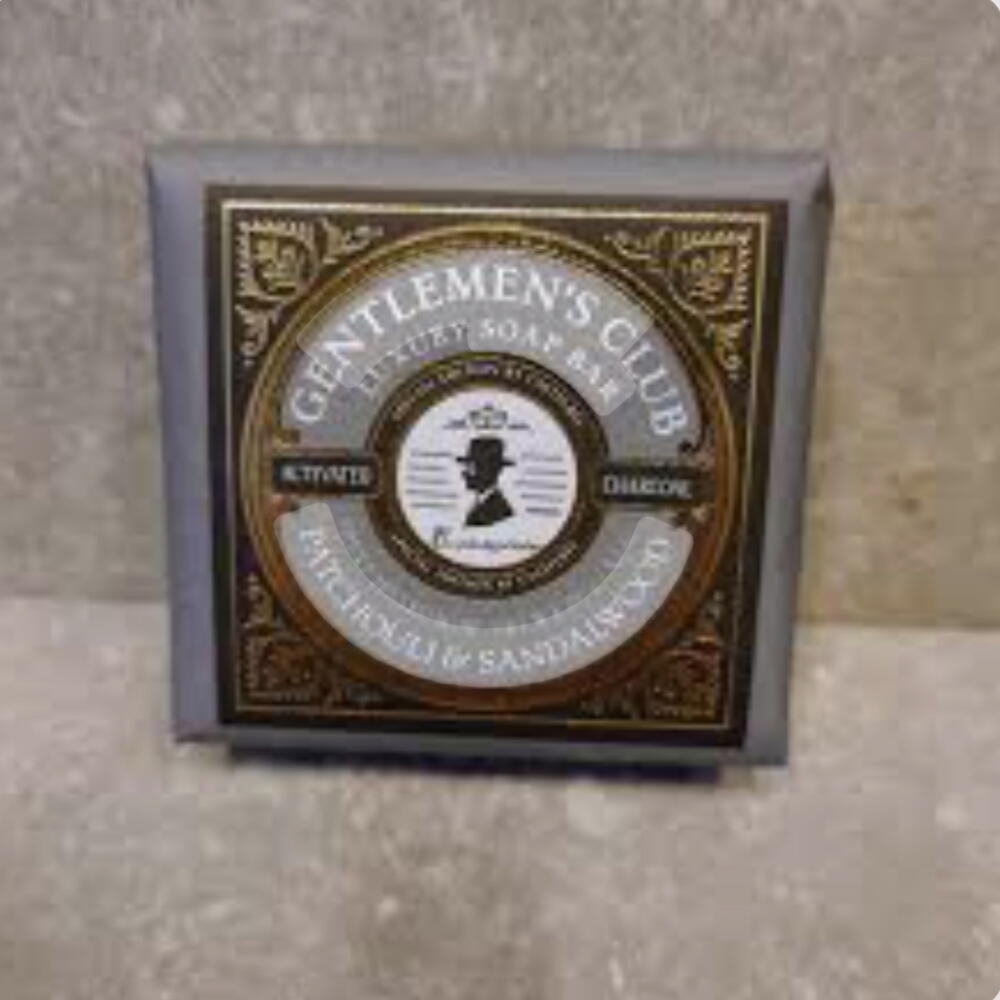 Sabonete Artesanal Gentlemens Club Fragância Atchouli Sandaloo Embalagem Única, Dotado de um Aroma Herbatico formado por notas de Patchouli e sândalo e elaborado co carvão ativado, é um sabonete criado a pensar no empreendedor pioneiro, de elegância clássica e mente moderna.