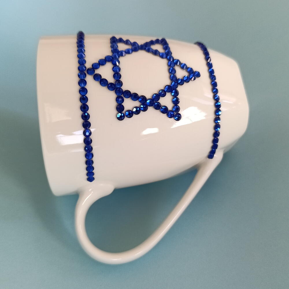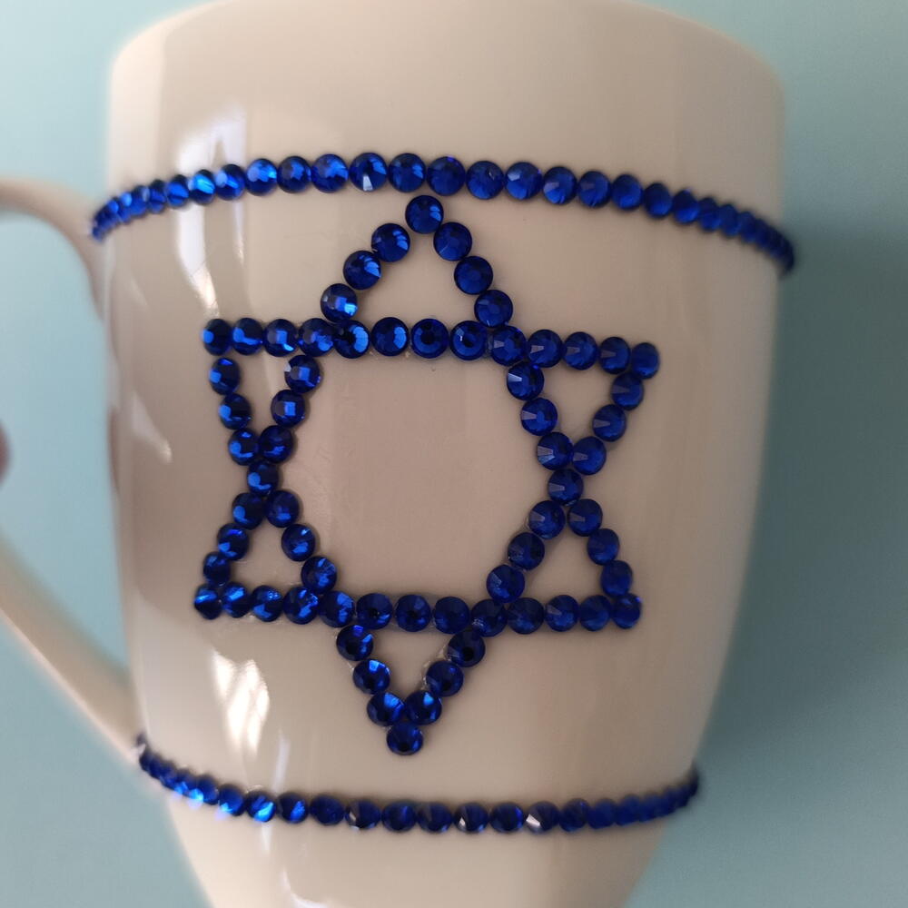 Sparkling Star of David Ceramic Mug (360ml) Add a touch of elegance to your morning ritual or your display cabinet. This beautiful ceramic mug combines a sleek design with a brilliant, rhinestone-embellished **Star of David**, creating a piece that is both functional and deeply meaningful. Key Features: Stunning Craftsmanship:Features a radiant Star of David design accented with shimmering rhinestones for a luxury look. Generous Size:A comfortable 360 ml capacity—perfect for lattes, herbal teas, or hot chocolate. High-Quality Ceramic:Thick, durable walls to keep your drinks warm and provide a premium feel in your hand. Elegant Aesthetic:The perfect blend of traditional symbolism and contemporary glamour. Product Details: Material:High-grade Ceramic Decor:Hand-applied Rhinestones Volume:360 ml Price:₪70 Why You’ll Love It: Whether you are looking for a unique Judaica gift, a holiday present, or a new favorite mug for your office, this piece stands out. It’s a wonderful way to celebrate heritage with a bit of "bling." Note:To keep the rhinestones sparkling like new, we recommend gentle hand-washing. Ready to ship! Message me to claim yours. ☕✨