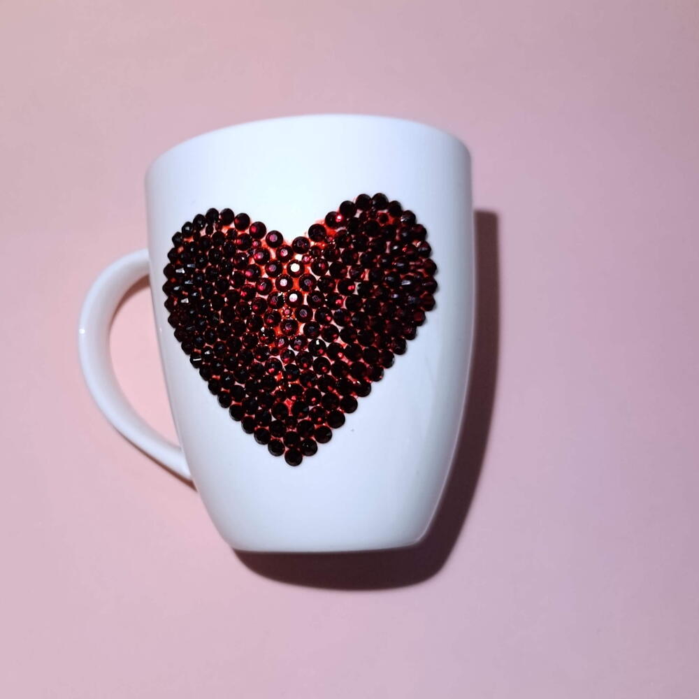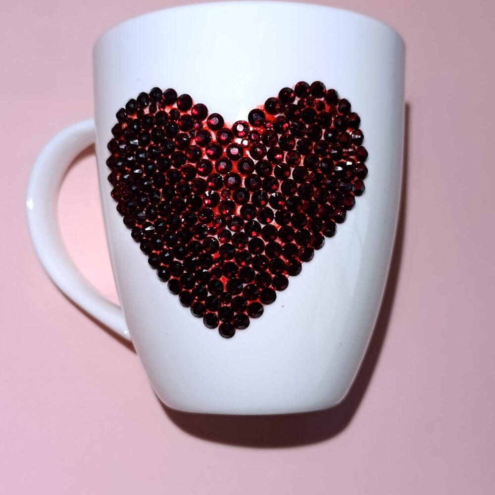Elegant Tea Coffee Cup with a Red Crystal Heart ❤️ Add a touch of luxury and romance to your daily ritual with this elegant tea and coffee cup, beautifully adorned with a sparkling heart made of red crystals. The shimmering crystals catch the light and create a truly eye-catching accent, turning every sip into a special moment. ✨ Capacity: 280 ml ✨ Suitable for tea and coffee ✨ Decorated with a dazzling red crystal heart ✨ Handcrafted design with fine attention to detail ✨ Hand wash only ✨ Perfect as a gift for Valentine’s Day, anniversaries, birthdays, or weddings A stylish and memorable piece that combines elegance, warmth, and love in one beautiful cup. Available gift box 🎁
