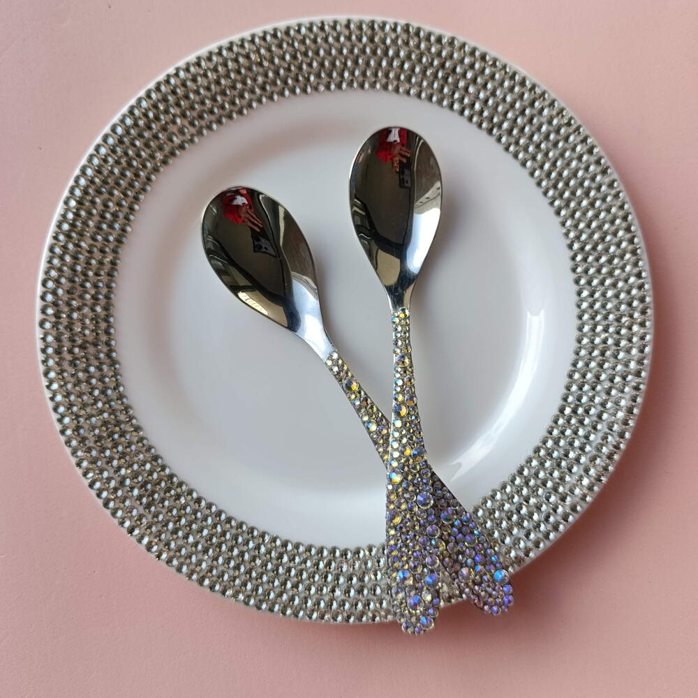 Set plate and 2 spoons. Available gift box 🎁 Do not wash in the dishwasher.