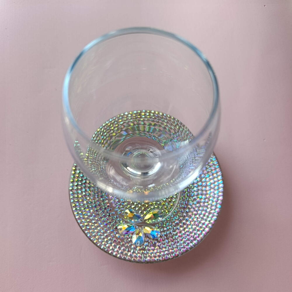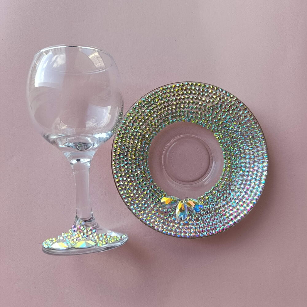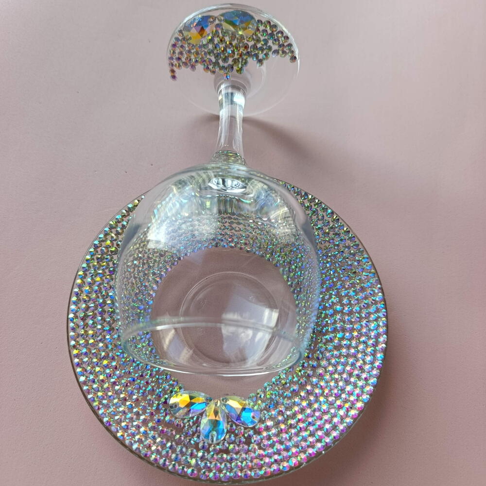 Elegant Kiddush set featuring a crystal-embellished goblet and matching saucer. A refined and meaningful piece for Shabbat and holidays, adding sparkle, beauty, and tradition to your table. Do not wash in the dishwasher