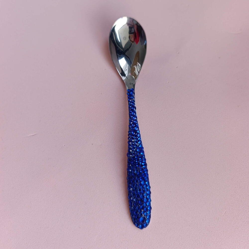 An elegant tea spoon adorned with sparkling blue rhinestones, adding a touch of luxury to every tea time .Perfect for gifting or elevating your everyday table setting with a refined, stylish accent. Custom orders are available in a variety of rhinestone colors to match your taste or special occasion.