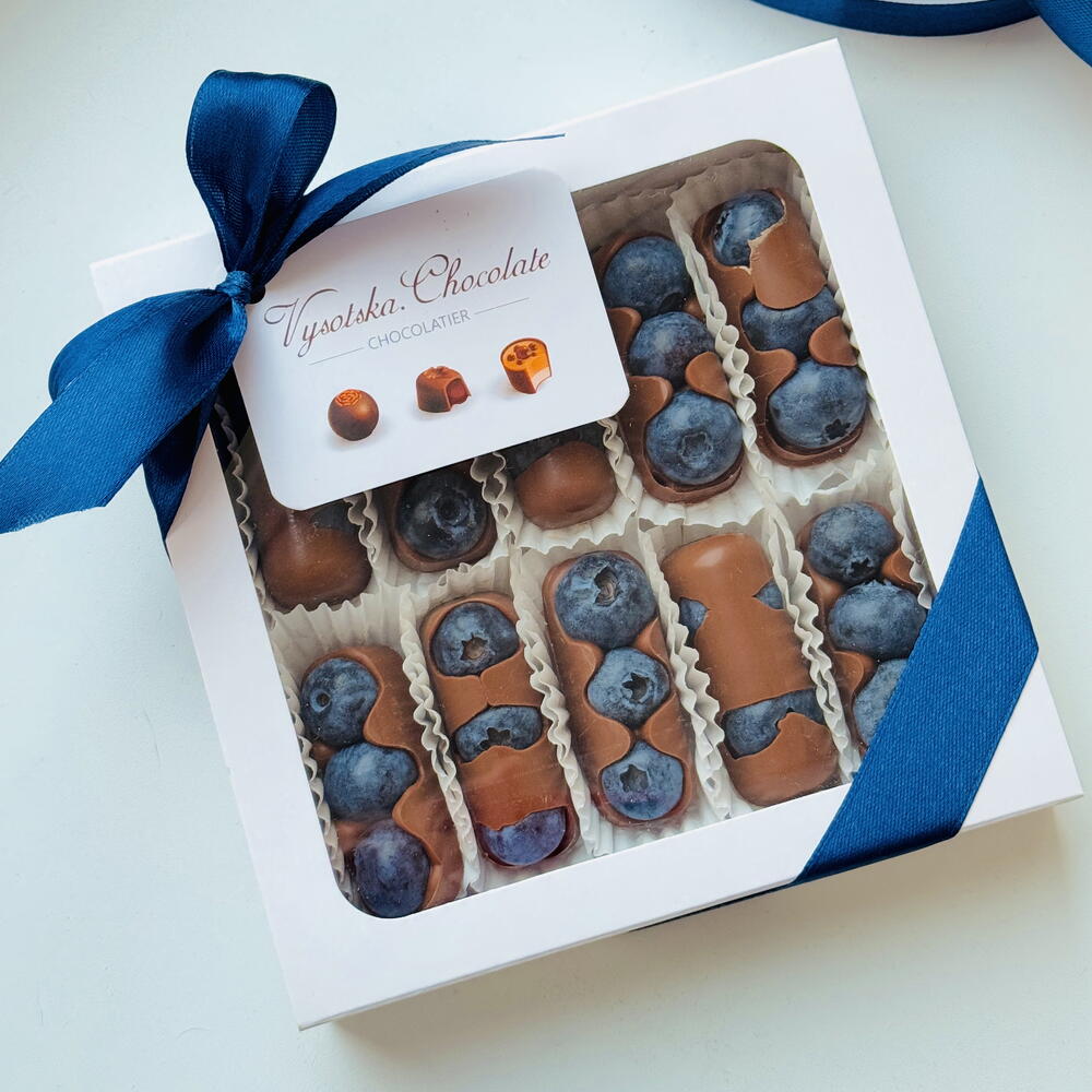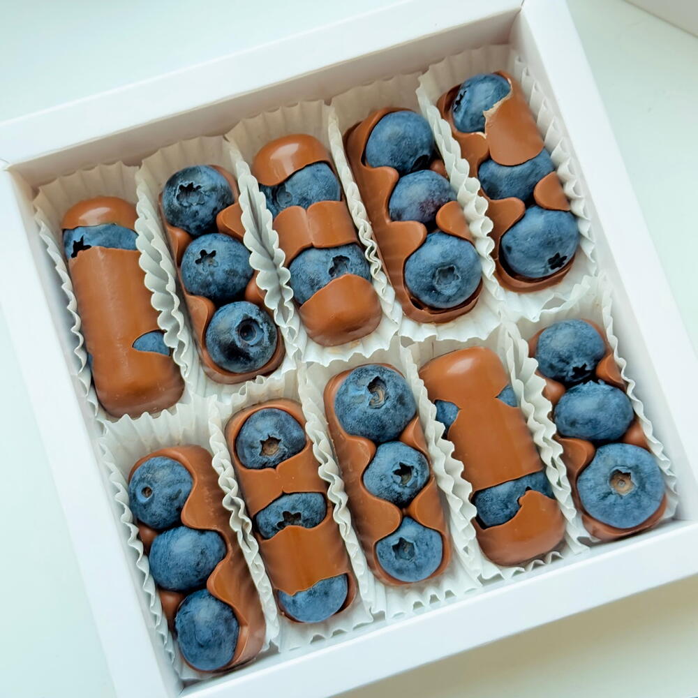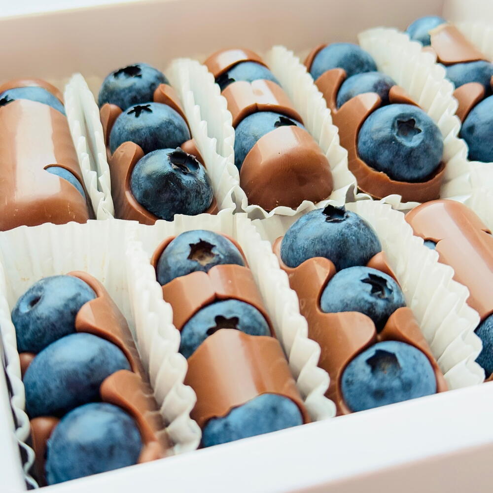 Frische Blaubeeren, überzogen mit samtiger Premium-Schokolade. Jedes Stück verbindet die natürliche Frische der Beeren mit dem reichen Geschmack von Schokolade. Eine einzigartige und elegante süße Leckerei.