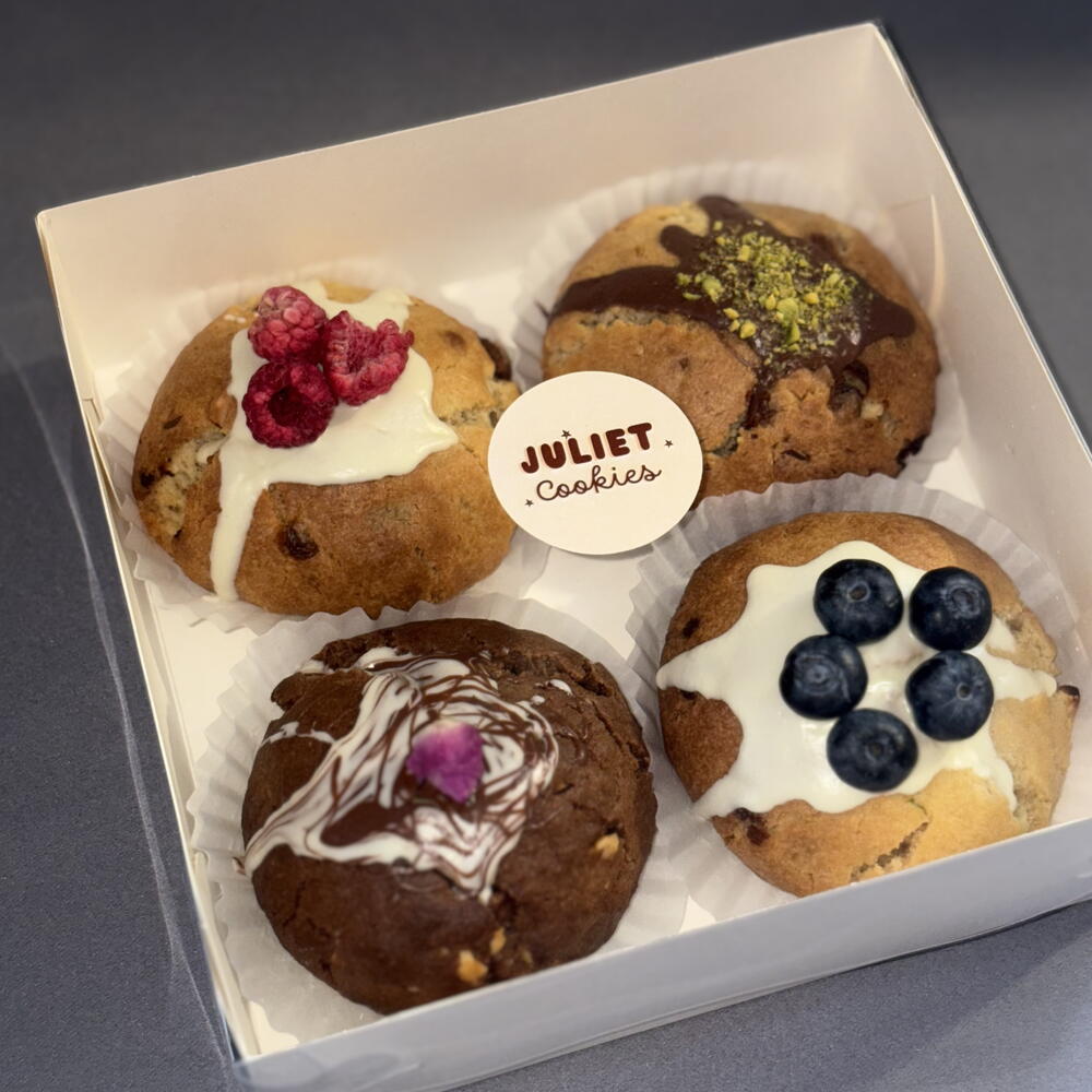 🍪 New York Cookies — легендарное печенье с сердцем из начинки Мягкое, плотное и по-настоящему пухлое печенье, наполненное щедрой порцией начинки. Каждое весит около 100 г — это почти как мини-десерт, а не просто печенье. Внутри — тёплая, тягучая сердцевина, снаружи — золотистая корочка и лёгкий минималистичный декор. Чтобы вкус стал идеальным, рекомендуем слегка подогреть печенье в микроволновке — начинка станет ещё нежнее и ароматнее. В набор входят 4 вкуса: 🥜 Классический с орехом — тёплый, хрустящий и уютный. 🍫 С Нутеллой — насыщенный шоколад и ореховая паста, которая тянется с каждым укусом. 🍒 Чизкейк-вишня — сливочная нежность и лёгкая ягодная кислинка. 💗 Фисташка-малина — контраст сладкого крема и свежей малины в идеальном балансе. Такой набор идеально подойдёт для подарка, чаепития с близкими или как десерт «для души». Каждое печенье — маленькая порция тепла, созданная с любовью. Срок годности: до 7 дней при условии хранении в холодильнике герметично. Чтобы раскрыть вкус, достаньте десерт заранее или немного подогрейте. Если хотите заказать на конкретную дату или время, которых нет в приложении — просто напишите нам, и мы с радостью постараемся исполнить ваш запрос 💕