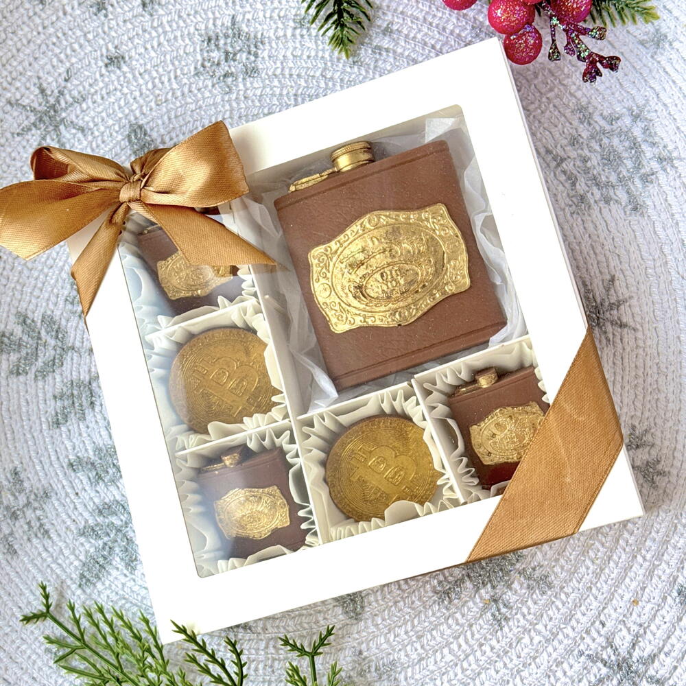 Diese elegante Geschenkbox enthält handgefertigte Pralinen in Form einer klassischen Flasche und goldener Münzen. Sie ist eine stilvolle und luxuriöse Leckerei, perfekt als besonderes Geschenk oder für eine Feier. 🎁🍫