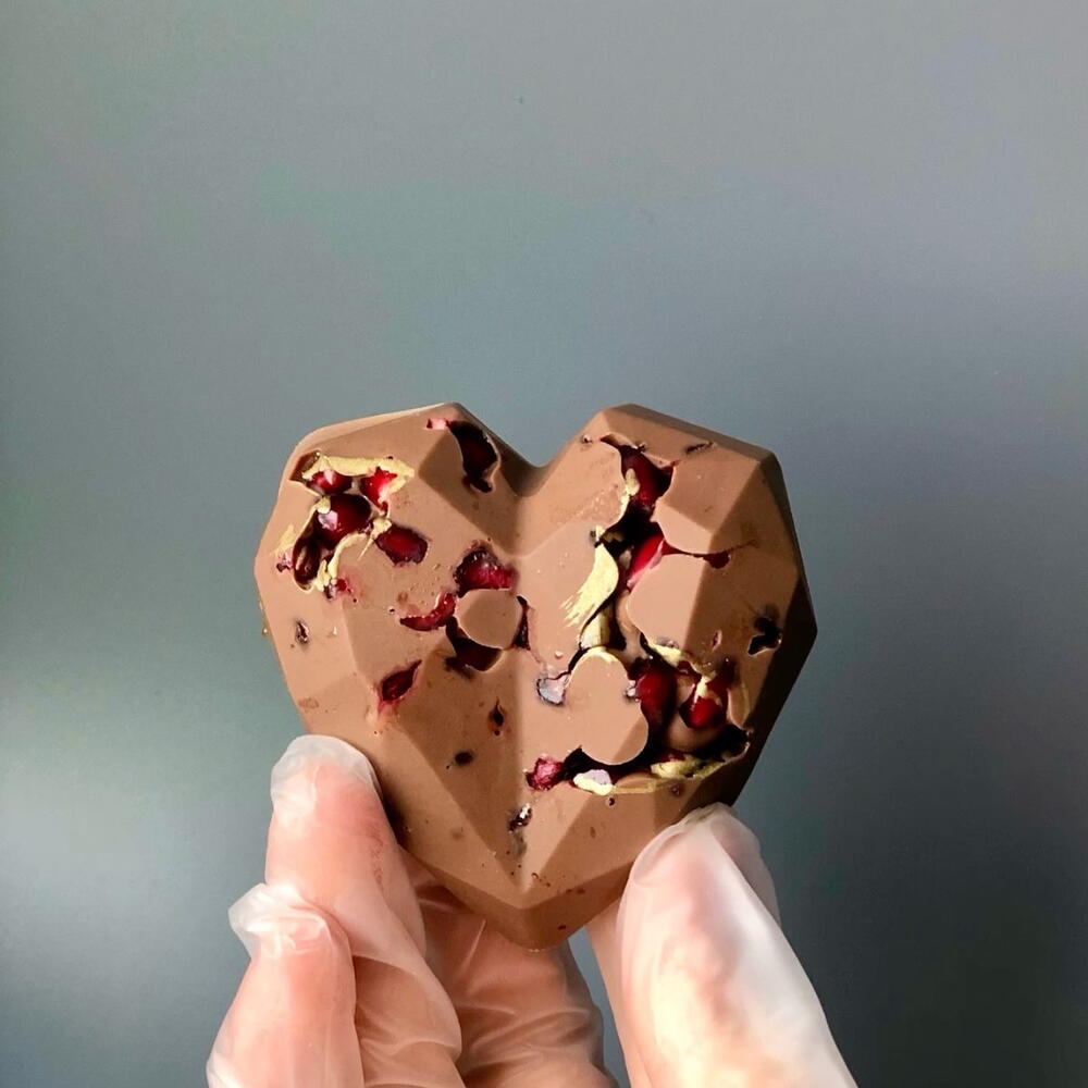 Шоколадное сердце с гранатом Идеальный баланс нежного молочного шоколада и кислинки граната. Каждое сердце создаётся вручную — с характерной текстурой, натуральными ингредиентами и продуманным вкусом. Подходит как: • сладкий комплимент • подарок «без повода» • стильное дополнение к набору десертов Красиво выглядит, приятно ломается и тает во рту 🤍 Заказать можно в любом шоколаде на ваш выбор: молочный или белый в количестве от 6 шт.