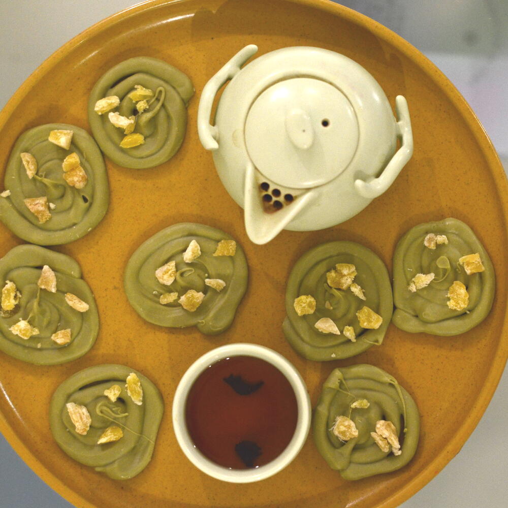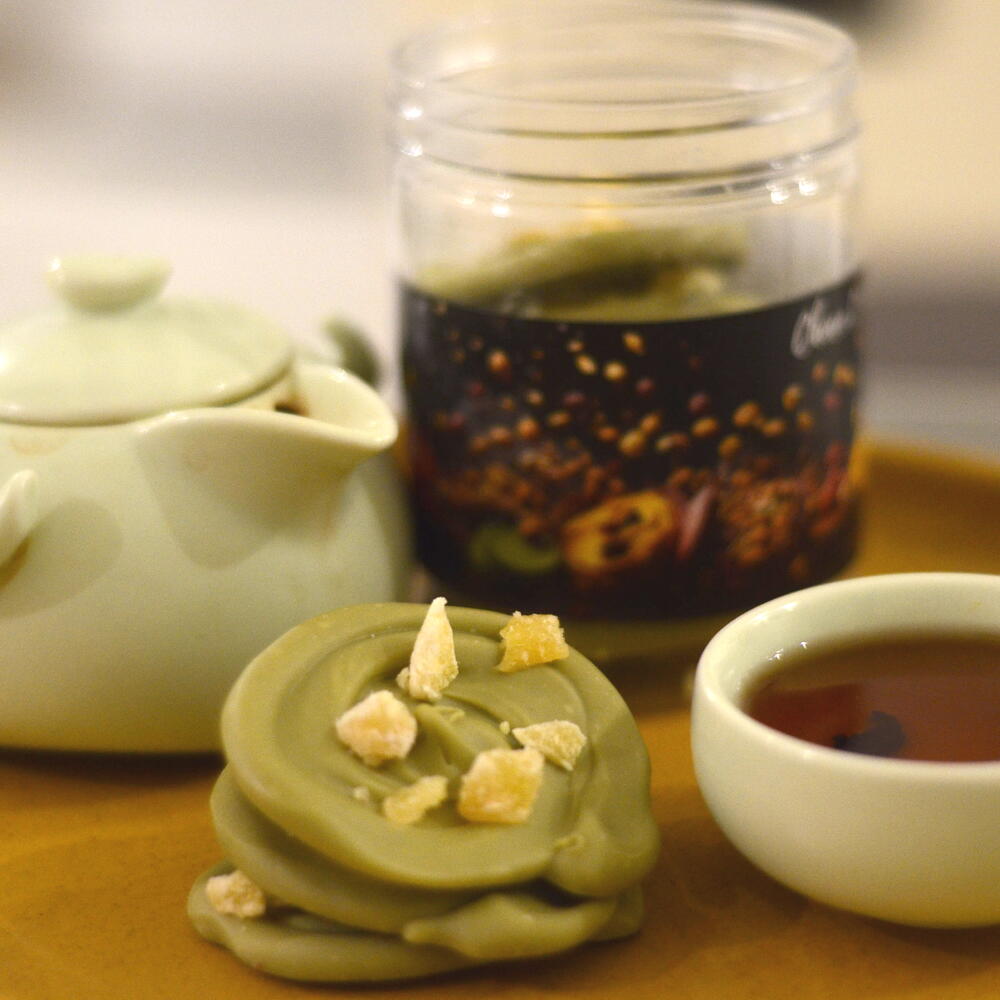 White chocolate, Japanese matcha tea, mint, candied ginger