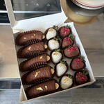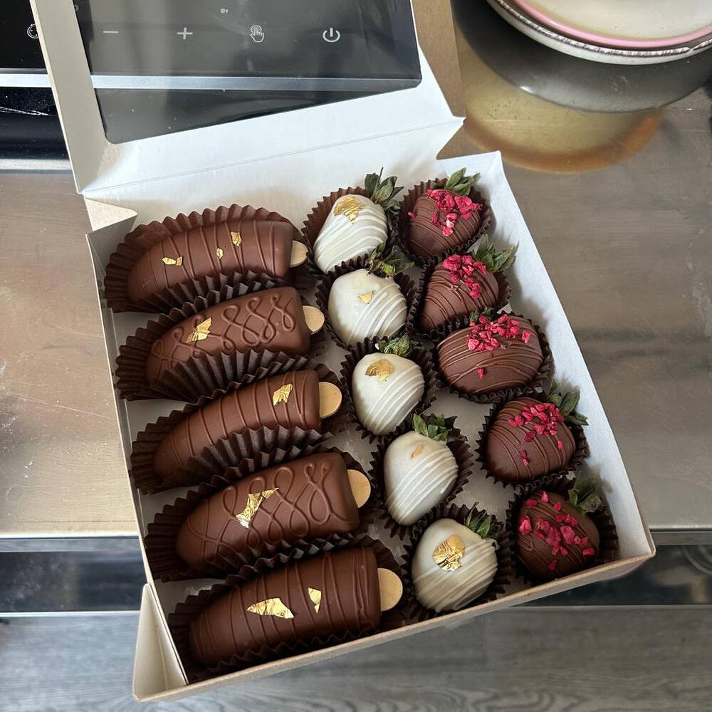 Erdbeeren und Bananen in Schokolade