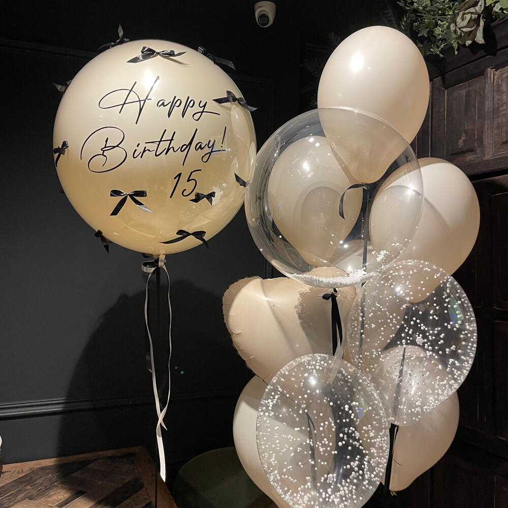 Included in the set: 1 crystal balloon 70cm with custom inscription and bows 1 bouquet of 9 balloons ( 1 heart 45cm , 2 balloons 30cm with styrofoam, 1 bubble 50cm with styrofoam, 5 balloons 30cm pastel) 2 weights 2 bags for transportation Total number of balloons: 10 Filling: All balloons are helium-filled длина, мм: 2000 ширина, мм: 2000 высота, мм: 2000