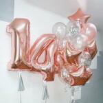 15 latex balloons 4 foil balloons hearts or stars 2 foil balloons numbers