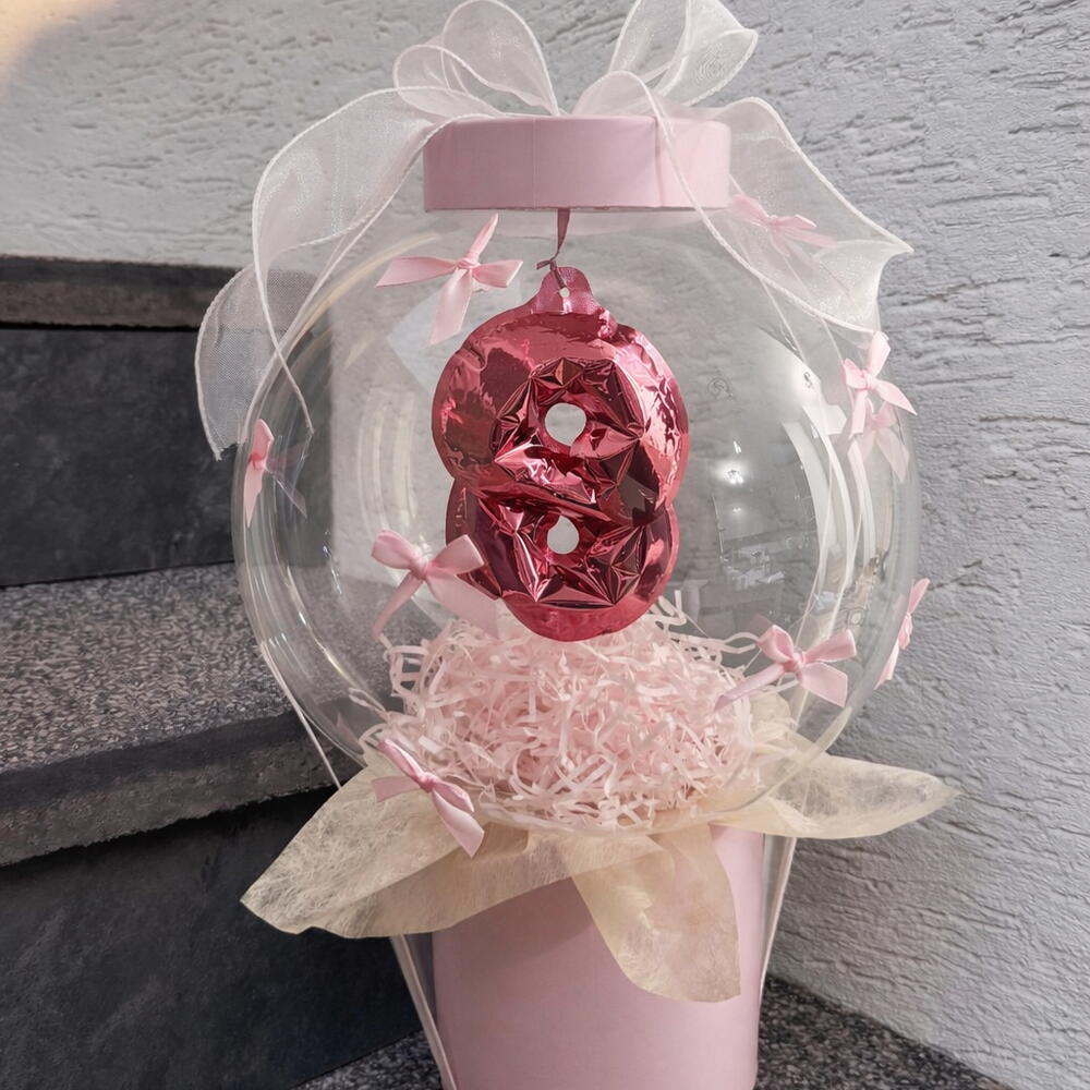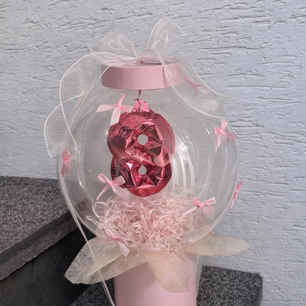 Geschenkkomposition „Ziffer 8 in einer transparenten Kugel