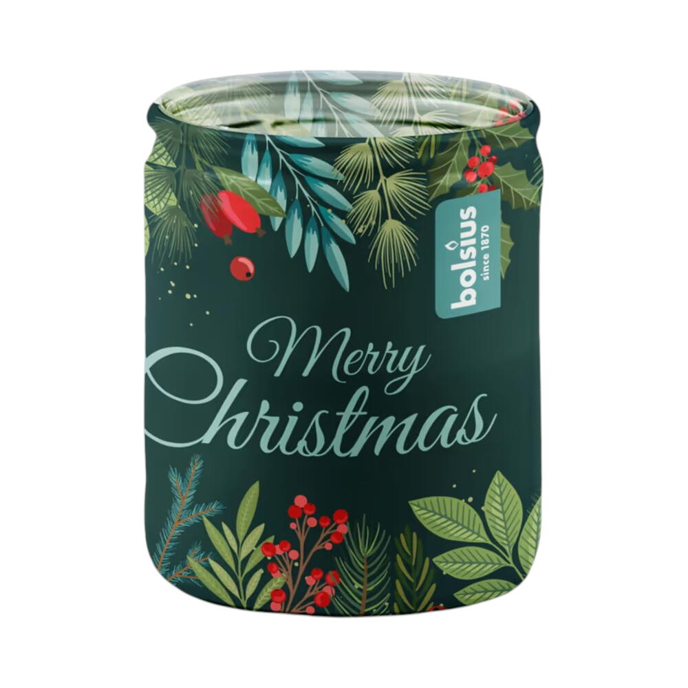 Dekorativní vánoční vonná svíčka Bolsius ve skle s vánočním motivem, vůně vanilky, velikost 68 x 82 mm, 90 g, doba hoření 23 hodin. Bolsius jsou kvalitní svíčky s tradicí od roku 1870.