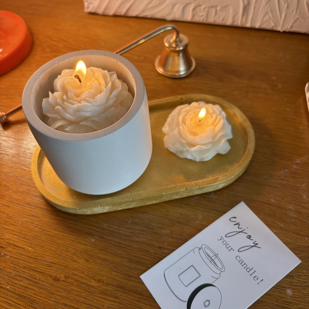 Ein elegantes Set, das eine einzigartige, entspannende Atmosphäre schafft. Besteht aus: • einer Kerze in einem Gips-Kerzenhalter mit einer dreidimensionalen Blüte • einer blütenförmigen Kerze • einem dekorativen Gipssockel in Vintage-Gold-Optik • einem praktischen Kerzenlöscher Jedes Stück wird in Handarbeit aus natürlichem Sojawachs und Gips gefertigt und besticht durch seine Liebe zum Detail. Die Kombination aus dezenten Formen und der Gold-Optik verleiht dem Set Eleganz und Harmonie und passt perfekt zu jedem Interieur. Der zarte Duft der Pfingstrose erfüllt den Raum mit einer subtilen, blumigen Note und schafft eine behagliche und entspannende Atmosphäre. Verwendung: • Schaffung einer ruhigen, einladenden Atmosphäre im Zuhause • ein elegantes Geschenk zum Geburtstag, Einzug oder anderen besonderen Anlässen • stilvolle Inneneinrichtung Materialien: Sojawachs, Gips Handgefertigt