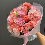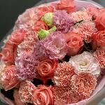 Eustoma - 5 Stk. Nelke - 11 Stk. Verpackung - 1 Stk. rosa Rose - 11 Stk.